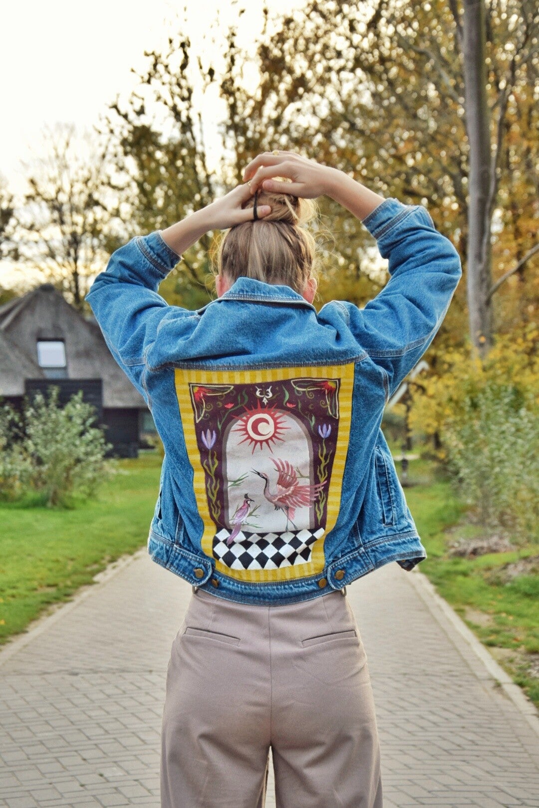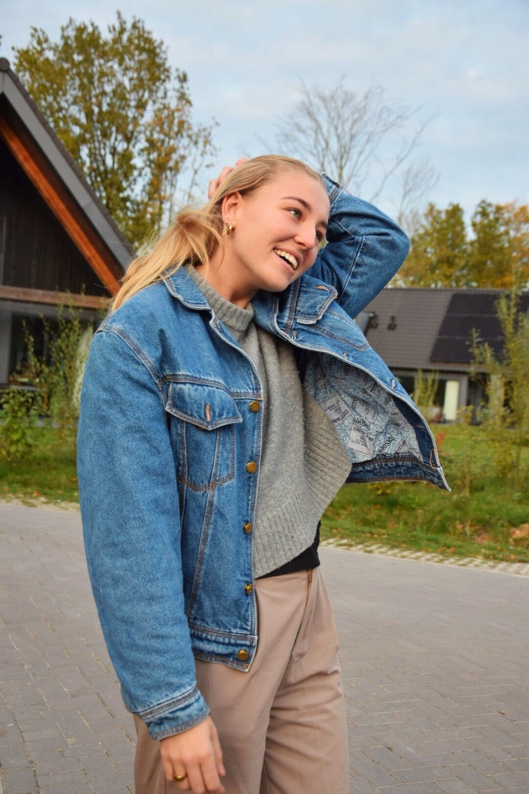 Hey wat leuk dat je bij deze jas terecht bent gekomen. De jas is vintage en heeft een leuke binnenkant. Hij heeft een oversized fit. De maat van de jas is ongeveer een S, maar in de jas zelf staat 44.